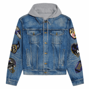 Baltimore Ravens NFL Style Hooded Denim Jacket For Fans