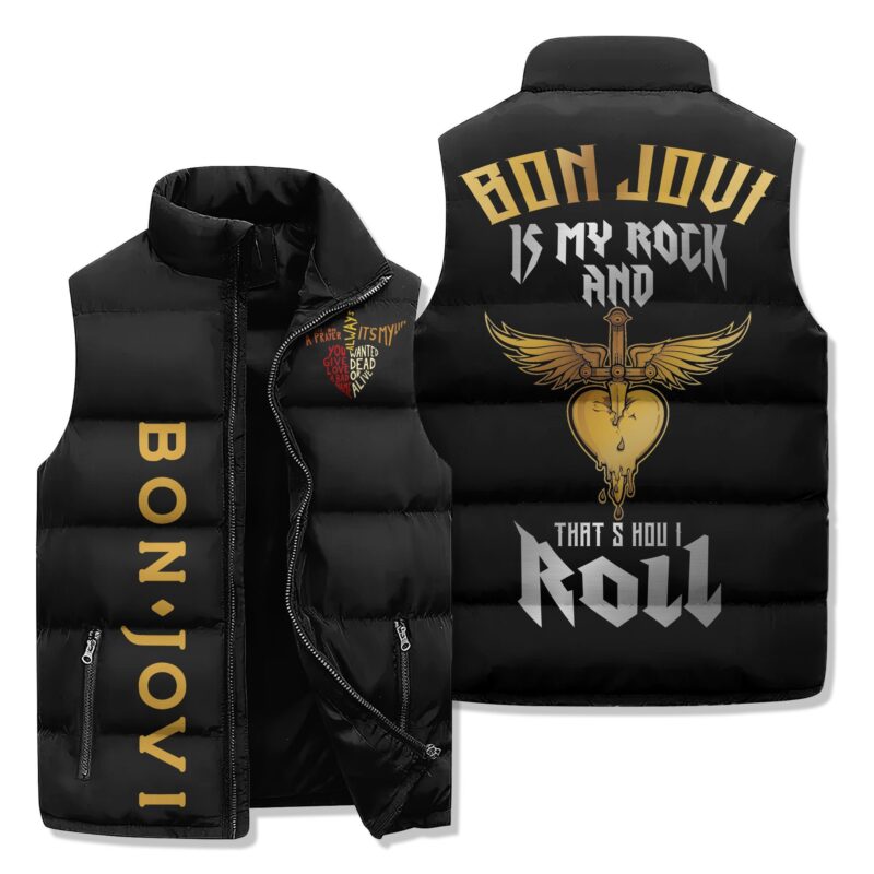 Bon Jovi Music Style Sleeveless Puffer Jacket For Fans