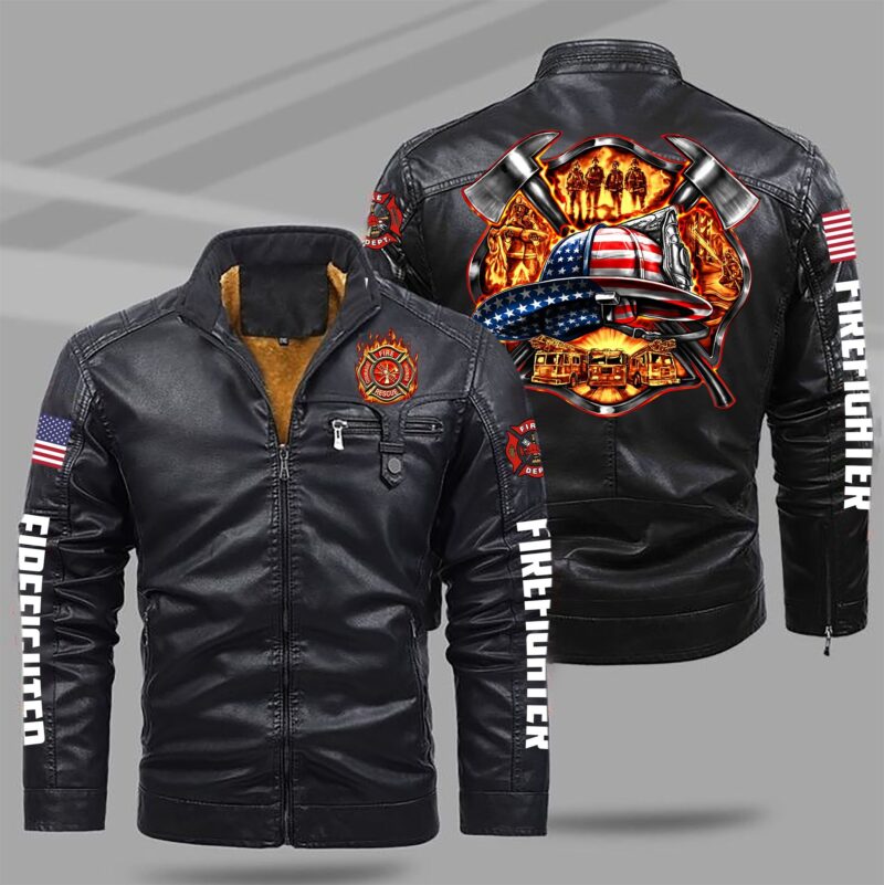 Firefighter Style Fleece Lined Leather Jacket For Fans
