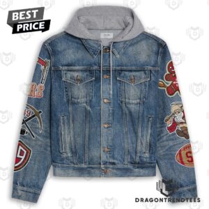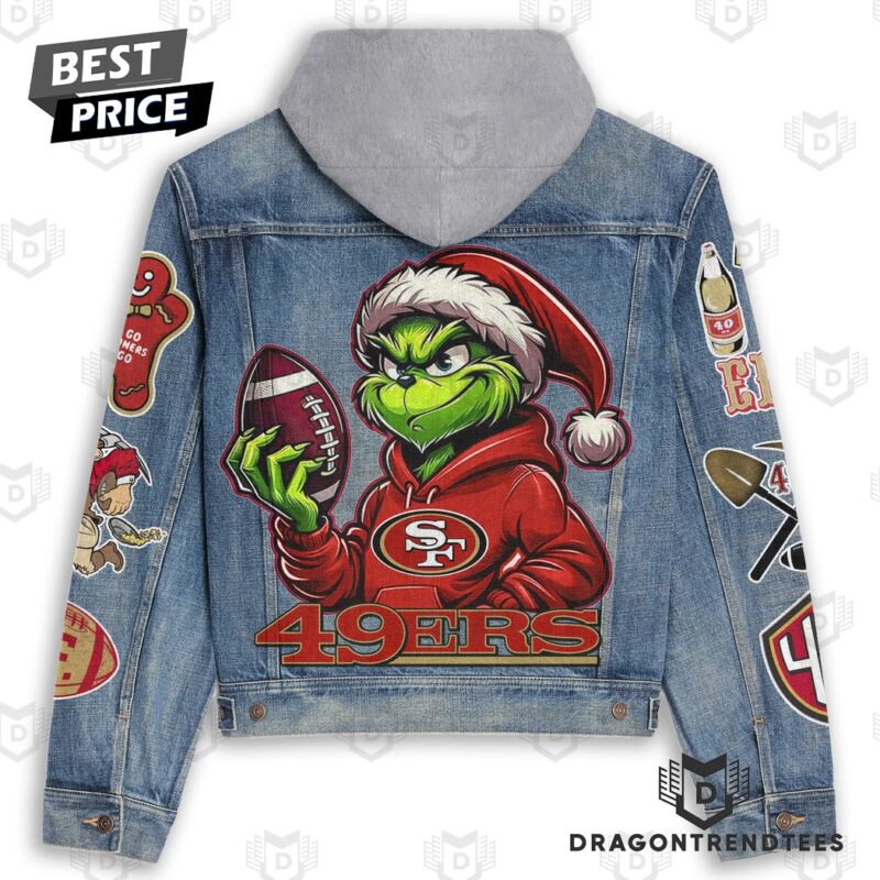Grinch x San Francisco 49ers NCAA Style Hooded Denim Jacket For Fans