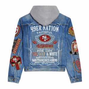 San Francisco 49ers NFL Style Hooded Denim Jacket For Fans
